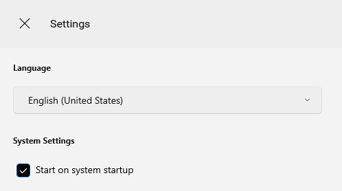The app starts up automatically with Windows.