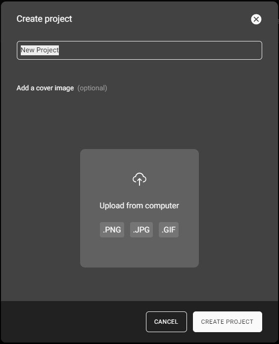 Per caricare un'immagine di copertina per un progetto, fare clic nel campo per selezionare l'immagine.