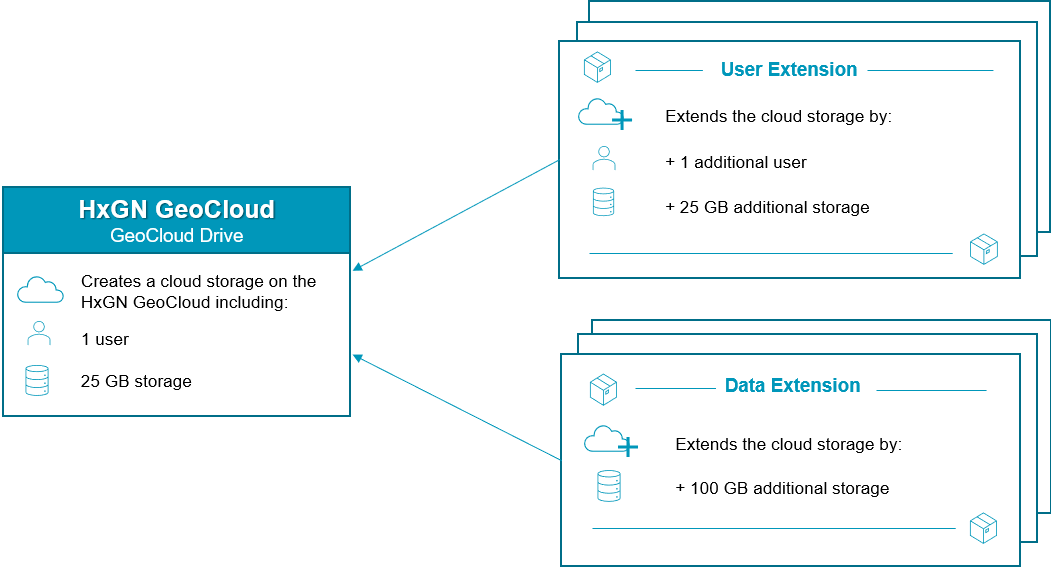 In dit artikel wordt het GeoCloud Drive-abonnement uitgelegd. U kunt het abonnement uitbreiden met twee verschillende soorten opties, de User Extension en de Data Extension. U kunt de opties zo vaak aanschaffen als nodig is om aan de behoeften van uw bedrijf te voldoen.